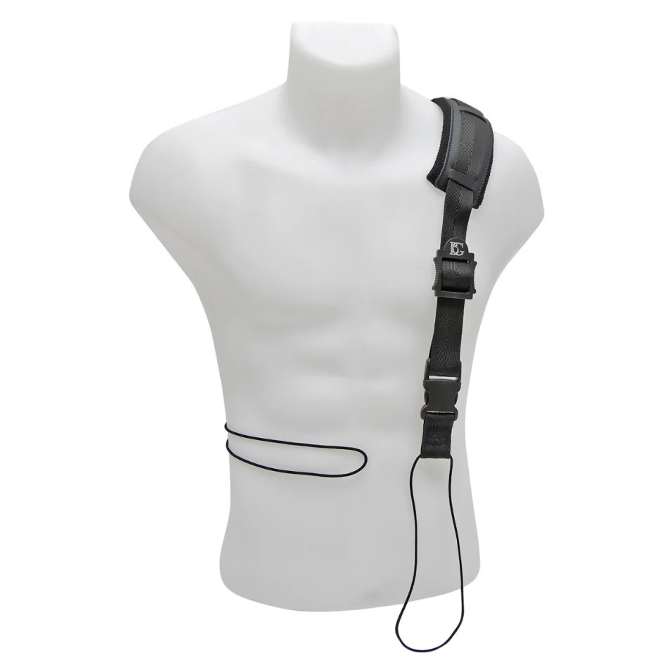 La bandolera BG en nylon para Tuba y Eufonio está compuesta de una hombrera de cuero forrada con esponja de algodón, hebillas con correa ajustable, y dos cuerdas para sujetar el instrumento.